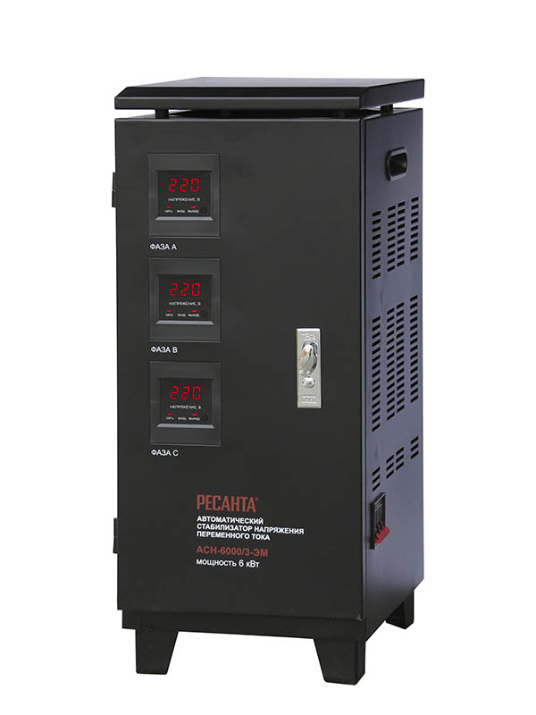 Стабилизатор напряжения АСН-6000/3-ЭМ "Ресанта" предназначен для обеспечения качественного электропитания и долгой работы различных бытовых устройств в условиях нестабильного напряжения в сети.