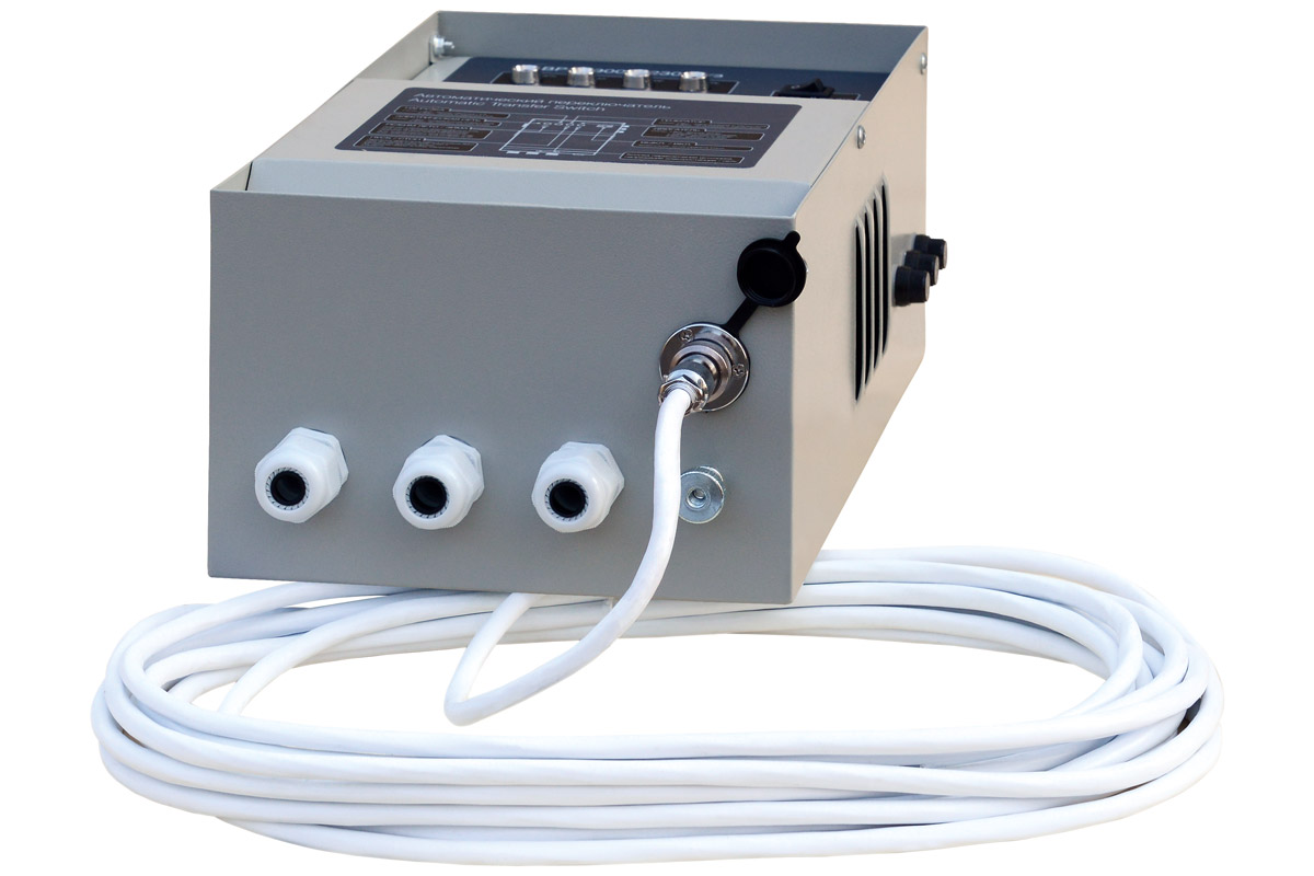 При возникновении аварийной ситуации производит автоматический запуск электростанции, восстанавливая электроснабжение.