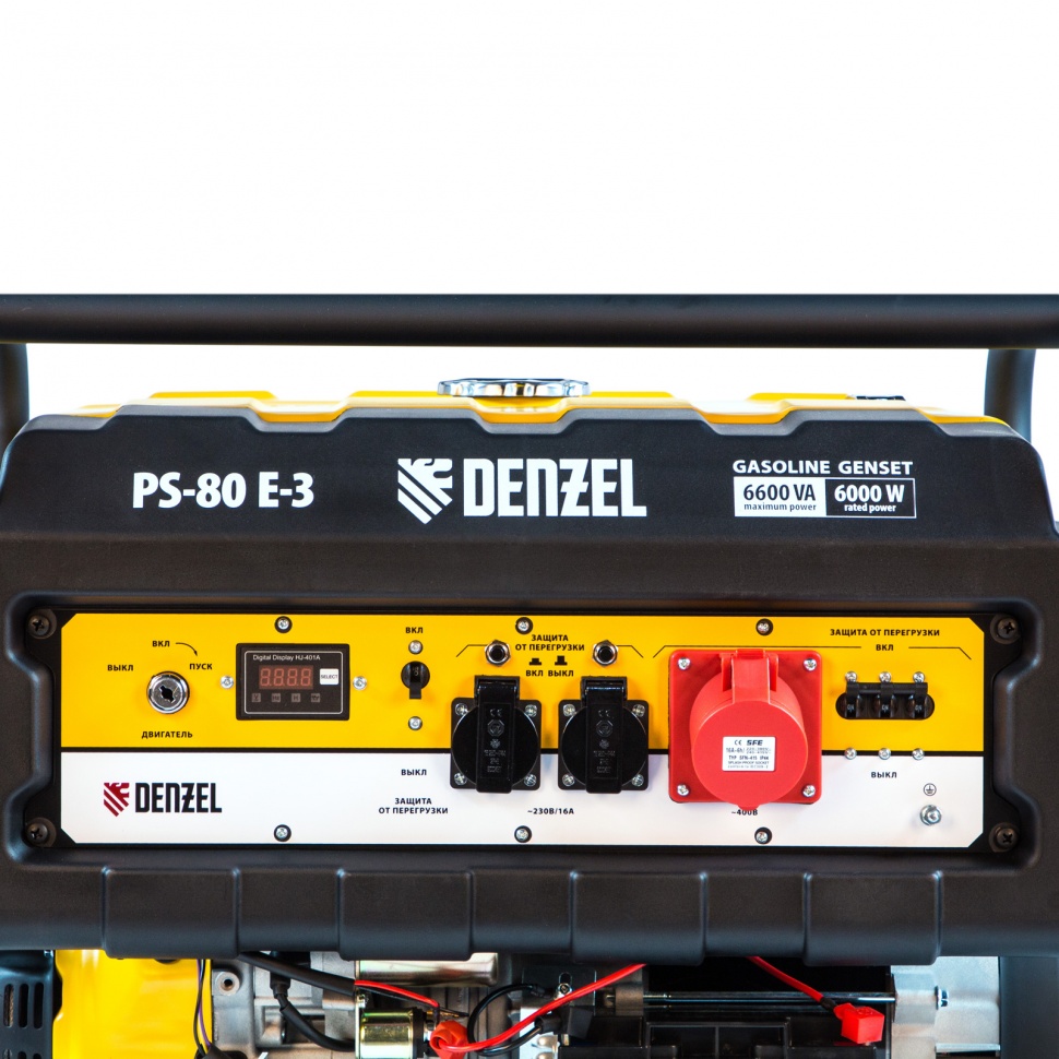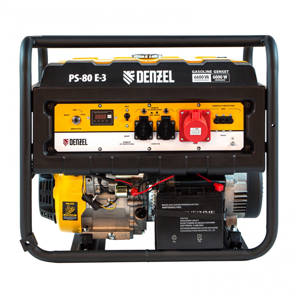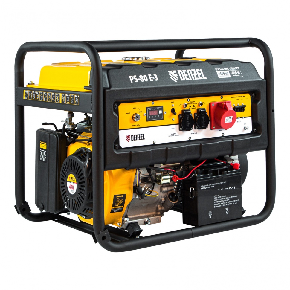 Генератор бензиновый Denzel PS 80 E-3 946954 с топливным баком объемом 25 л, с электростартером, используется в качестве резервного источника питания для снабжения однофазным или трехфазным током различного оборудования суммарной мощностью до 6,6 кВт. Подходит для использования как в загородном доме, так и на строительной площадке. Детали 4-х тактного бензинового двигателя Denzel Long Life выполнены из качественных материалов и имеют высокую точность обработки. Благодаря увеличенному топливному баку генератор проработает без дозаправки до 10 часов..