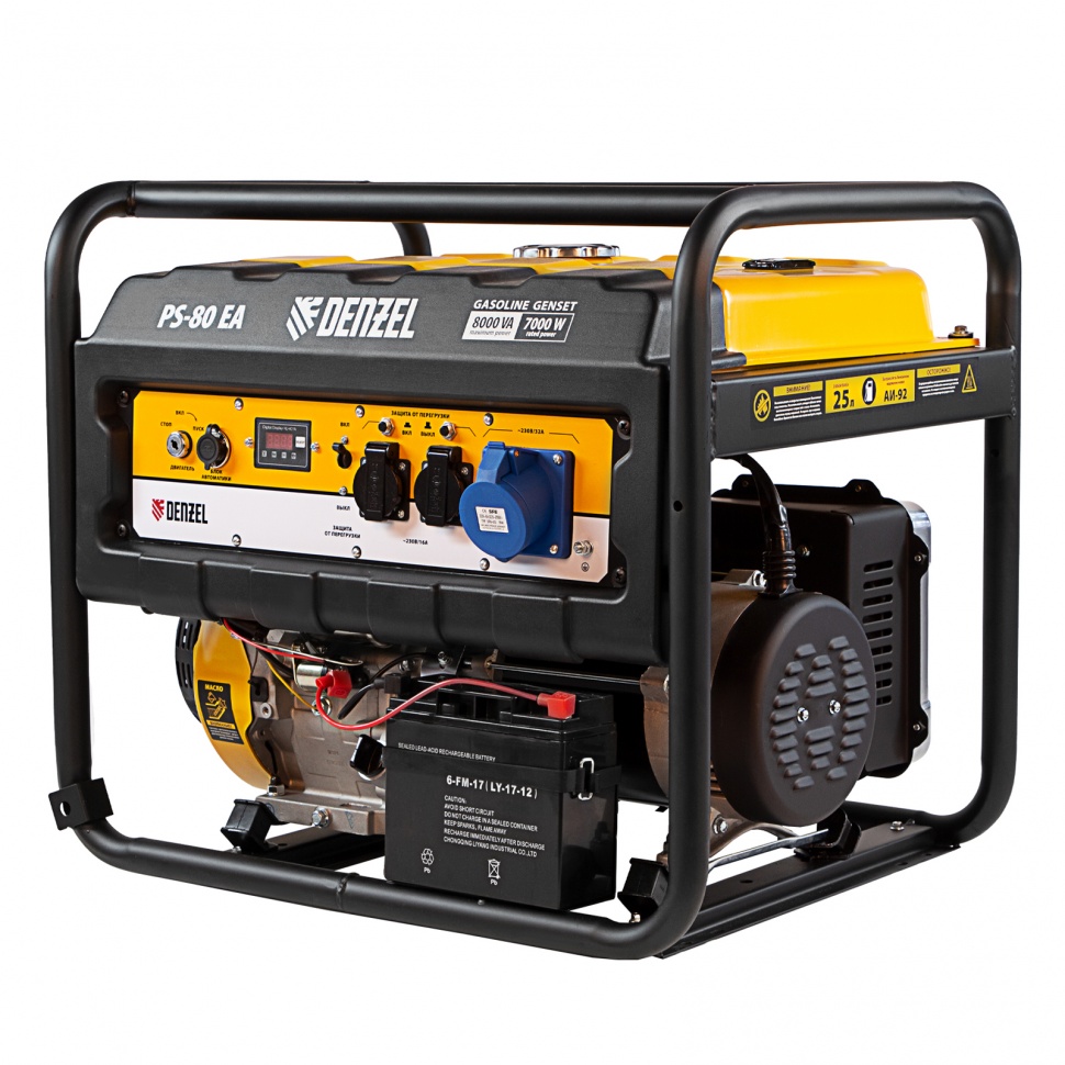 Бензиновый генератор Denzel PS 80 EA обеспечит приборы суммарной мощностью 8 кВт. Подойдет для использования как в загородном доме, так и на строительной площадке. Мощный и надежный генератор отличается высоким качеством материалов и обработки деталей, что значительно продлевает его ресурс. Имеет многоступенчатую систему защиты от повреждений. А благодаря большому баку проработает без дозаправки до 8 часов. Имеет возможность подключения блока автозапуска для полноценного резервного обеспечения электричеством дома..