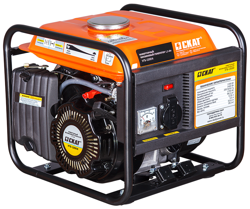 Бензиновый инверторный генератор УГБ-1300И мощностью 1,3 кВт работает на четырехтактном двигателе объемом 98,5 см3.