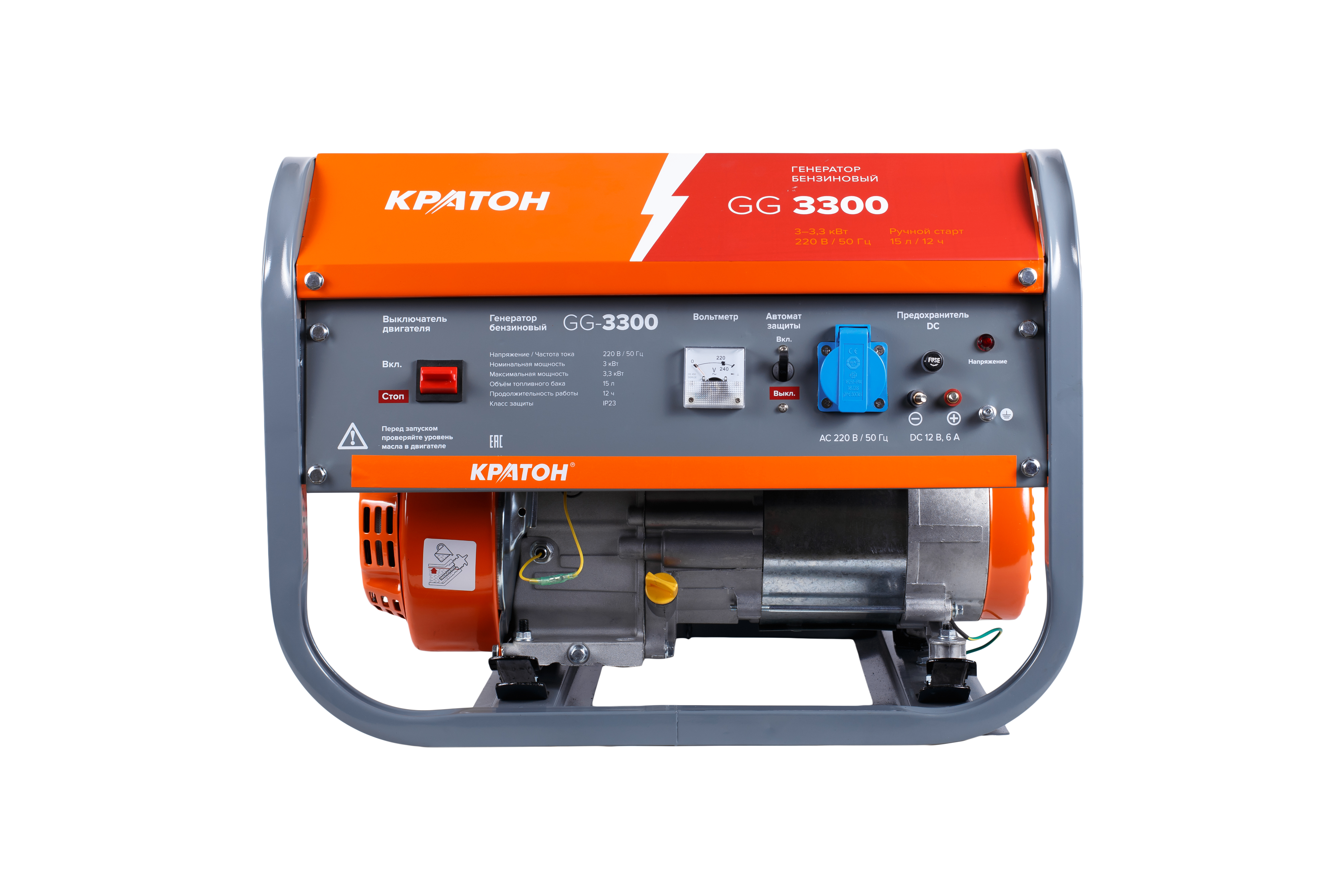 Генератор Кратон GG-3300 относится к классу электрогенераторных установок с приводом от двигателя внутреннего сгорания. Используется, как источник резервного электроснабжения для питания электроприемников потребителей однофазным переменным током напряжением 220 В, частотой 50 Гц и для зарядки аккумуляторов с помощью цепи постоянного тока напряжением 12 В..