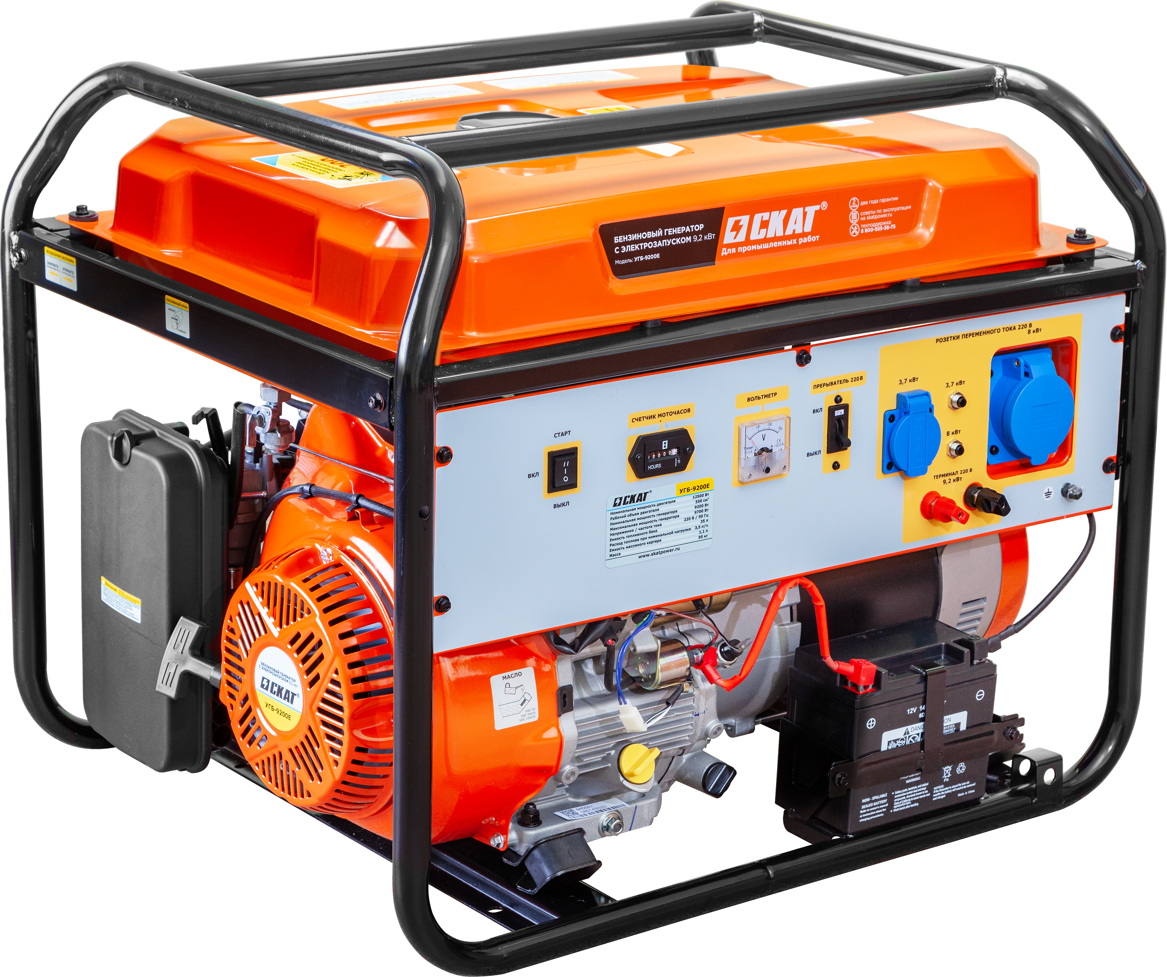 Бензиновый генератор УГБ-9200ЕВ с рабочей мощностью 9,2 кВт и с кратковременной пусковой мощностью до 20,6 кВт может обеспечить одновременную работу нескольких приборов с высокими пусковыми токами: сварочный аппарат до 230 А, насосные станции, морозильное оборудование и рефрижераторные контейнеры, промышленные станки, для работы которых требуется запас мощности не менее 20 кВт. Функция электрозапуска позволяет включать генератор одним нажатием кнопки. Для удобного перемещения генератора покупайте комплект шасси..