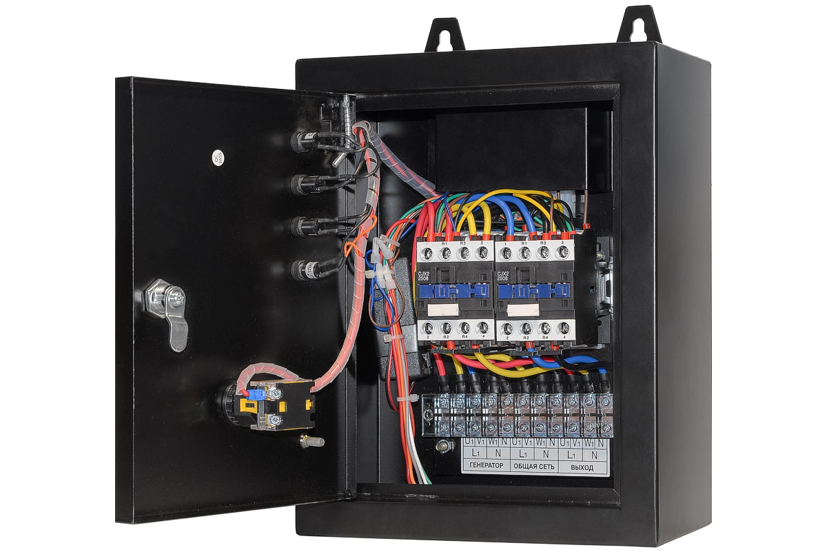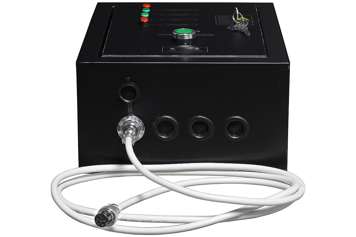 Блок АВР для дизельных генераторов однофазных и трехфазных от 5 до 9 кВт, включает в себя систему автозапуска (автоматического ввода резервного электропитания). При появлении основного источника электропитания происходит отключение электростанции. Блок автоматического управления для контроля наличия напряжения в сети..