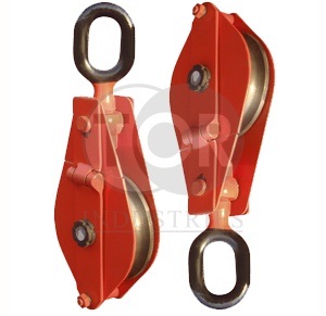 Блок монтажный с ушком по функциям и конструкции сходен с блоком с крюком. Отличие заключается в металлическом кольце (ушке), вставленном вместо крюка в качестве грузового крепления. Соединенные между собой канатом блоки составляют устройство, использующееся для снижения тягового усилия грузоподъемных механизмов – полиспаст. При работе монтажный блок располагается перпендикулярно середине продольной оси барабана лебедки..