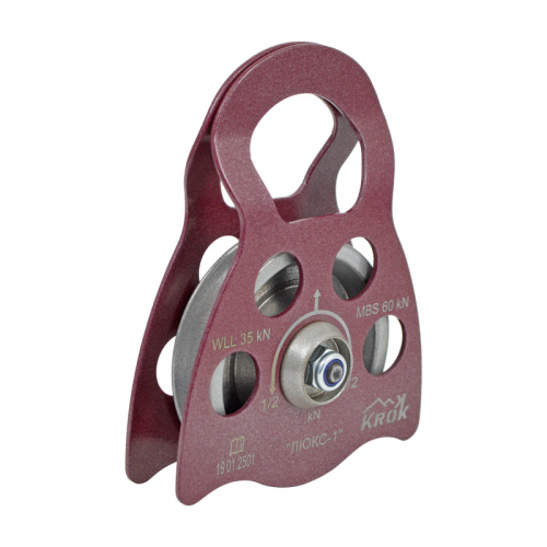Необходимо помнить, что при поднятии груза через одинарный блок, на место крепления блок-ролика к анкерному узлу действует ДВОЙНАЯ сила массы груза! Об этом напоминает маркировка на щеке в виде дроби: 1/2..