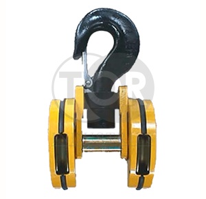 Крюковая подвеска применяется в качестве рабочего элемента в разных грузоподъемных механизмах. Изделие состоит из роликовых колес (одного или нескольких), закрепленных на оси вращения с помощью подшипников, защитного кожуха и крюка для фиксации груза. Роликовые колеса, содержащиеся в конструкции данного механизма, изготовляются из стали..