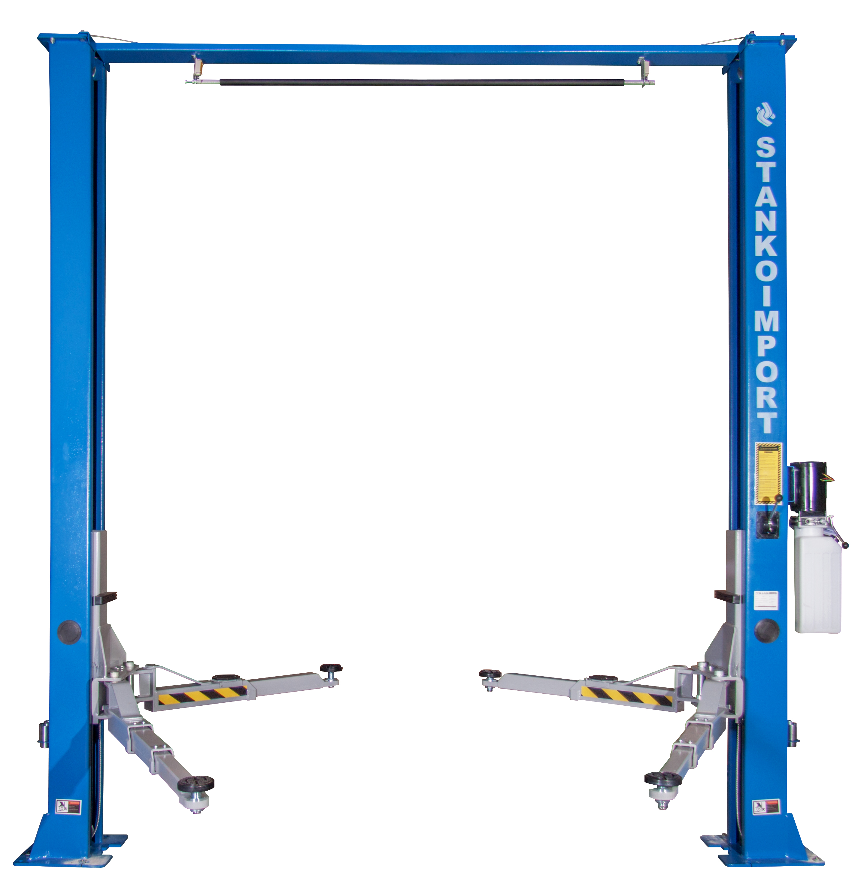 На подъемнике стоят механические стопора, но снятие происходит с одной колоны с помощью рычага.