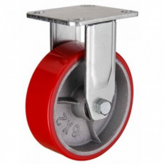 Колесные опоры большегрузные неповоротные, полиуретановое покрытие, чугунный обод, платформенное крепление, роликоподшипник..