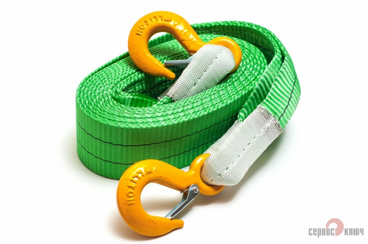 Трос изготовлен из высококачественного полипропилена, который обладает высокой прочностью и долговечностью. Лента троса имеет ширину 60 мм и длину не менее 5 метров. Петли ленты усилены специальной защитной тканью, которая предотвращает истирание и повреждение троса. На концах троса закреплены два мощных стальных крюка по 300 грамм каждый, которые легко и надежно крепятся к буксируемому и буксирующему автомобилю. Трос устойчив к воздействию различных агрессивных сред, таких как нефтепродукты, кислоты, растворители..