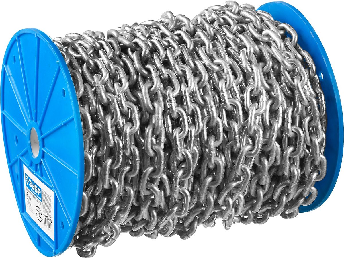 Цепь короткозвенная Зубр 4-304050-10 предназначена для перемещения грузов и их подъема на нужную высоту с помощью различных грузоподъемных устройств.