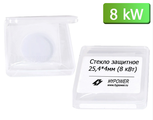 Защитное стекло является плоскопараллельным окном, диаметром 25,4 мм, толщиной 4 мм, устанавливаются перед линзой и служат барьером между линзой и рабочей зоной. Стабильно работает на длине волны генерации лазера 1064 - 1080 нм. Пропускная способность: 99.5%. Лучевая стойкость защитного покрытия 20 кВт/см2. Предназначено для работы с лазерами мощностью до 8 кВт..