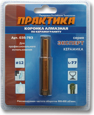 По сути представляют из себя алмазное трубчатое сверло. Особенно подходят для сверления керамического гранита, стекла, облицовочной плитки. Подходит для сверления бетона и кирпича. Для безударного сверления! Для работы лучше всего использовать аккумуляторную дрель, сочетающую высокий крутящий момент и невысокие обороты. Использовать охлаждение водой. Рекомендуемая частота оборотов 800 об/мин..