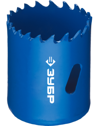 Биметаллические коронки ЗУБР обладают высоким рабочим ресурсом благодаря использованию быстрорежущей стали с повышенным содержанием кобальта и повышенной производительностью за счет переменного шага режущих зубьев.