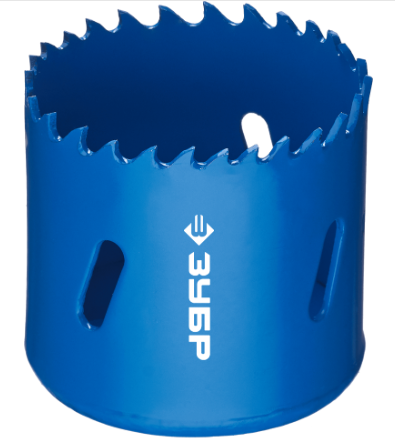 Биметаллические коронки ЗУБР обладают высоким рабочим ресурсом благодаря использованию быстрорежущей стали с повышенным содержанием кобальта и повышенной производительностью за счет переменного шага режущих зубьев.