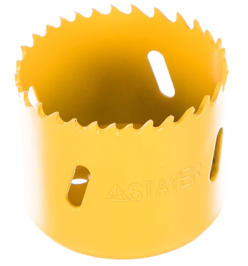 Универсальная биметаллическая коронка PROFESSIONAL STAYER применяется совместно с дрелями, перфораторами и стационарными станками. Предназначена для сверления в безударном режиме металла, дерева, ДСП, гипсокартона, алюминия и твердых пластмасс. Зубья изготовлены из быстрорежущей стали с 5% содержанием кобальта. Коронка обладает максимальной производительностью и высоким рабочим ресурсом. Зубья имеют особую заточку, что даёт усиленный захват материала и обеспечивает оптимальный отвод продуктов пиления..