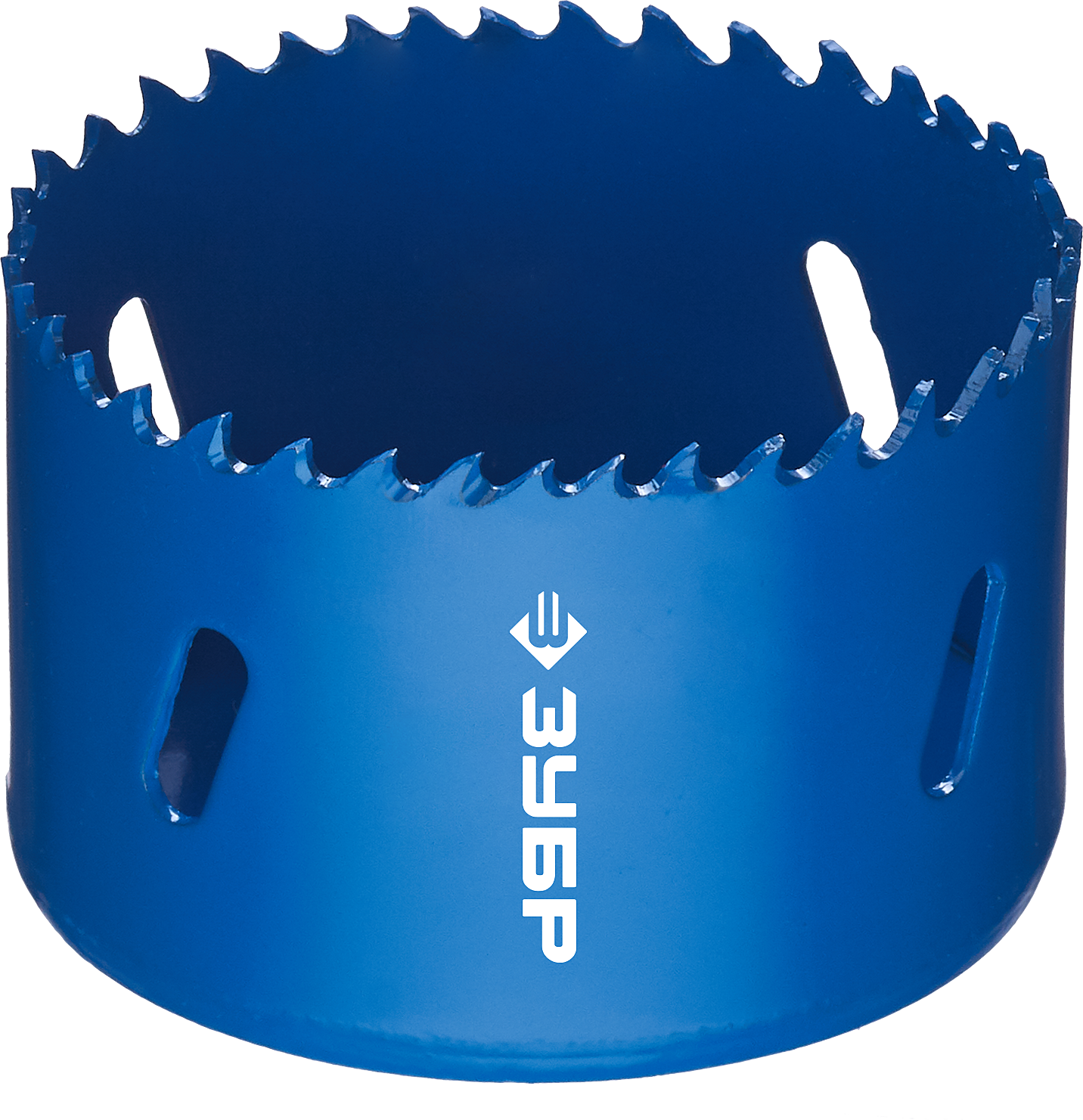 Биметаллические коронки ЗУБР обладают высоким рабочим ресурсом благодаря использованию быстрорежущей стали с повышенным содержанием кобальта и повышенной производительностью за счет переменного шага режущих зубьев.