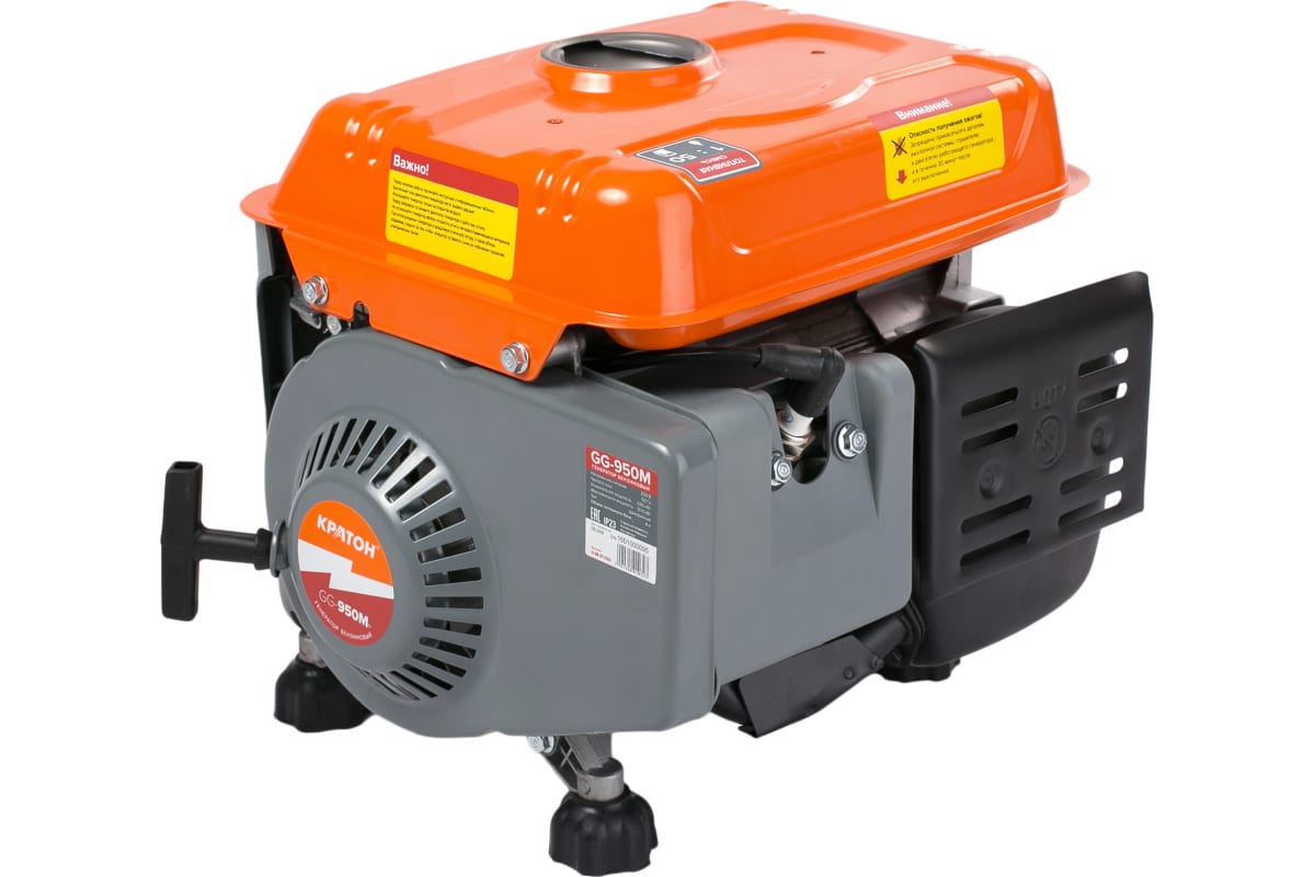 Генератор бензиновый Кратон GG-950M — электроустановка, которая преобразует энергию от сгорания топлива в электрическую энергию.. Используется в местах, где отсутствует электропитание, а также в качестве резервного источника электроснабжения, в случае поломки электросети. Установка имеет небольшой вес, проста в эксплуатации и легко запускается при низких температурах. Предусмотрена ручная система пуска..