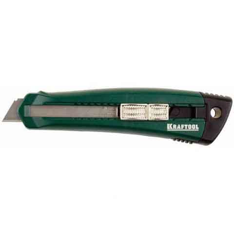 Нож KRAFTOOL 09195_z01 – профессиональный инструмент, используется для реза (при приложении значительных усилий) различных материалов: линолеума, дерева, кровельных материалов, пластика, гипсокартона и гипсолитовых плит. Двухкомпонентный корпус обеспечивает безопасность и долговечность инструмента..