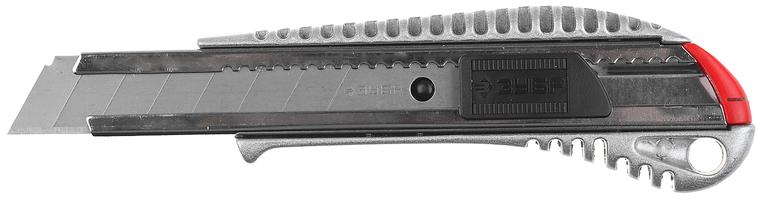 Универсальный нож ЗУБР, рахзработан для профессионального реза различных материалов (линолеум, ковровые покрытия, гипсолитовые плиты, гипсокартон, кровельные материалы, пластик, дерево).