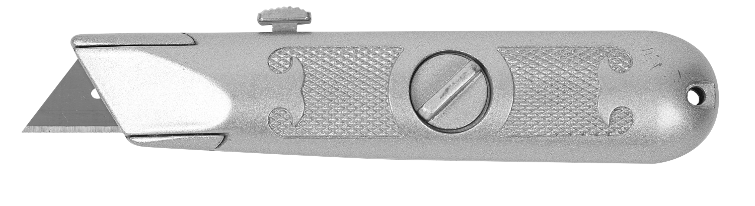 Выдвижное лезвие с автоматической фиксацией обеспечивает уверенную работу и безопасное хранение