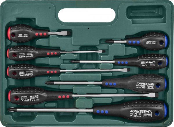 Набор отверток "D04PP08S" применяется для проведения работ со всеми видами крепежа, имеющего внутренний рабочий профиль SL и PH..