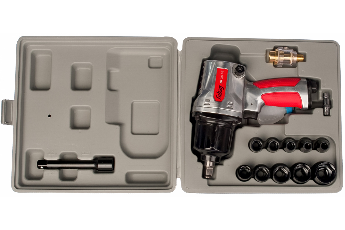 Ударный пневмогайковерт FUBAG IW900 + набор головок 100195 используется в автосервисах, производственных цехах, ремонтных мастерских. Высокое значение крутящего момента позволяет работать с достаточно нагруженными соединениями. Инструмент поставляется в комплекте с 10 головками, что расширяет его спектр применения..