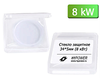 Защитное стекло является плоскопараллельным окном, диаметром 34 мм, толщиной 5 мм, устанавливаются перед линзой и служат барьером между линзой и рабочей зоной. Стабильно работает на длине волны генерации лазера 1064 - 1080 нм. Пропускная способность: 99.5%. Предназначено для работы с лазерами мощностью до 8 кВт.