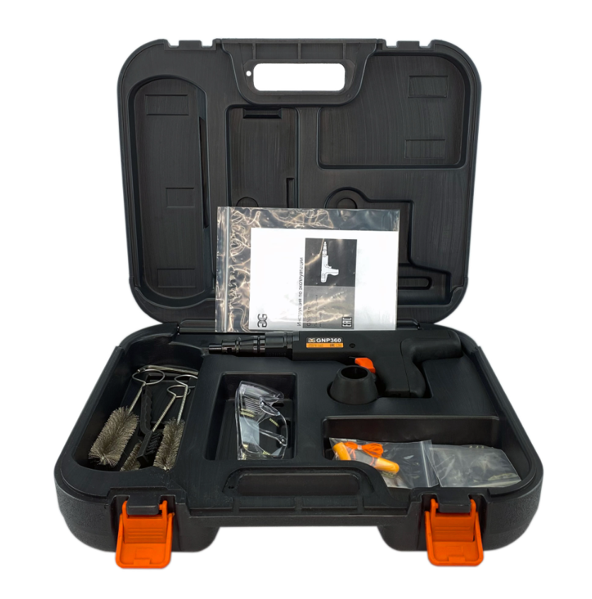 Пороховой монтажный пистолет GNP360 имеет широкую область применения, прост в эксплуатации и обслуживании, безопасен и не требует специальных навыков. Применяется для монтажа на различных типах поверхностях, таких как: бетон, металл, стеновые блоки, кирпич. Является эффективным инструментом при фиксации опалубки, штукатурной сетки, профлиста и гидроизоляционных материалов. Существенно повышает производительность. Мощный и эргономичный пороховой монтажный пистолет..