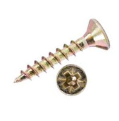 Универсальный шуруп желтый цинк, используется для крепления различных конструкций к дереву, фанере, ДСП. Шуруп имеет потайную головку с крестообразным шлицем (PZ) и острый наконечник..