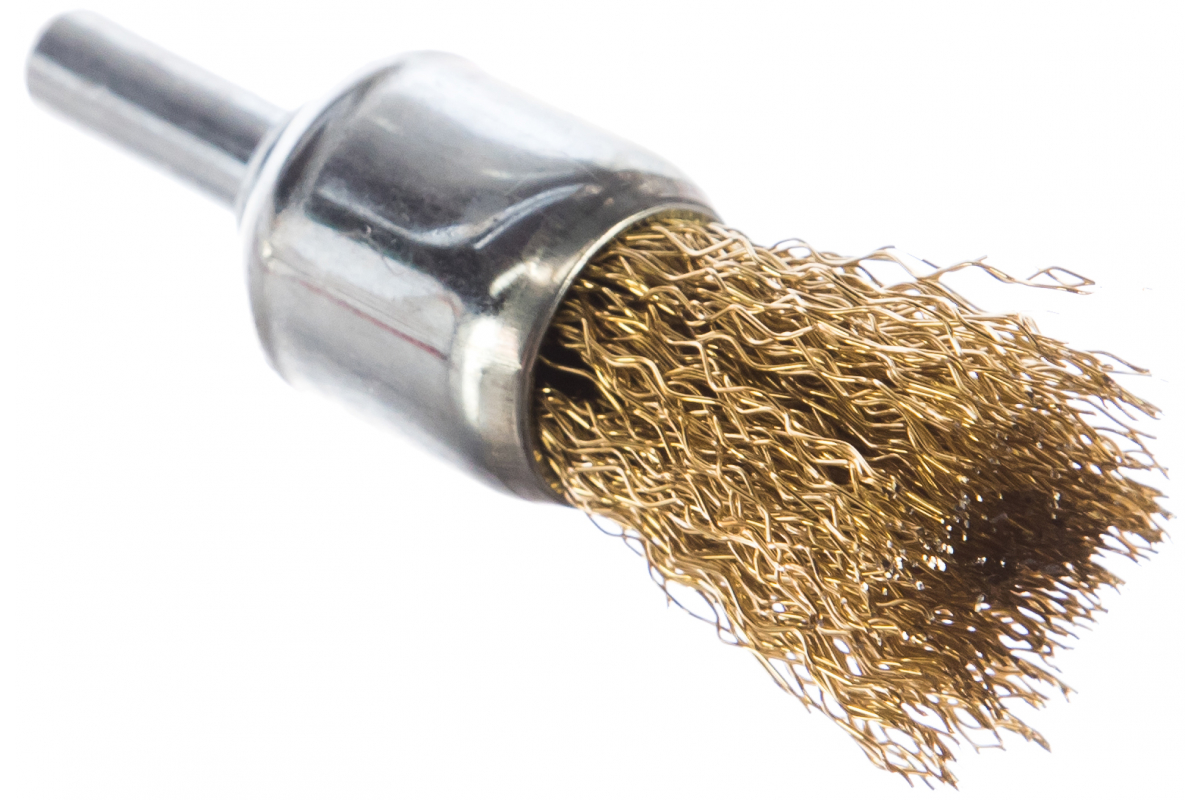 Кистеобразная щётка для дрели изготовлена из латунной проволоки..