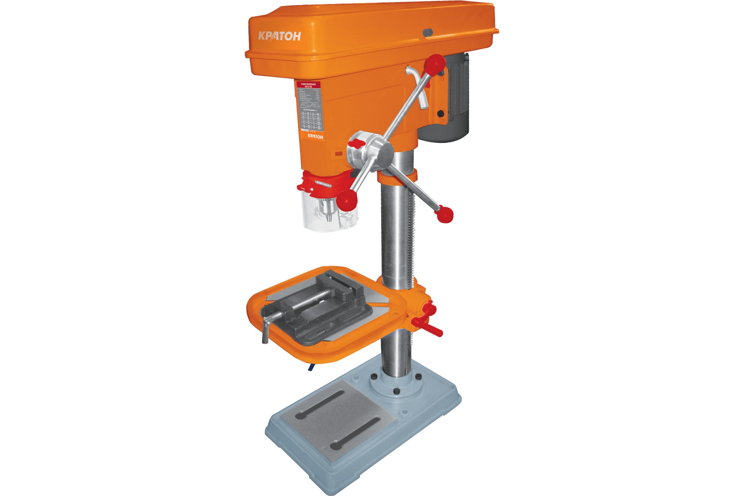 Малогабаритный сверлильный станок КРАТОН DM-16/550 рассчитан на небольшие объемы работы (в быту или мастерской). С его помощью можно сверлить, развертывать и зенкеровать отверстия в древесине, пластике и металле. В зависимости от плотности материала частоту вращения можно регулировать (180–2770 об/мин). Максимальный ход шпинделя — 85 миллиметров. Модель оснащена двигателем на 550 Вт и сверлильным патроном В16 (1,5-16 мм). Станок комплектуется тисками для надежной фиксации детали. Вес модели — 60 кг..