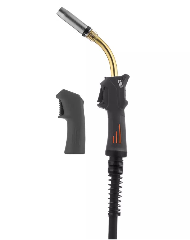 Сварочная полуавтоматическая горелка MIG MP 36 DOUBLE HOLD – горелка со съемной рукояткой, которая позволяет работать с меньшей нагрузкой на руки и кисти сварщика, повышает естественность и эргономику положения при сварке. Съемная ручка также обеспечивает дополнительное удобство при сварке длинных швов с удобным положением руки на пусковой кнопке. Горелка используется с аппаратами полуавтоматической сварки MIG, где подключение осуществляется через центральный евроразъем..