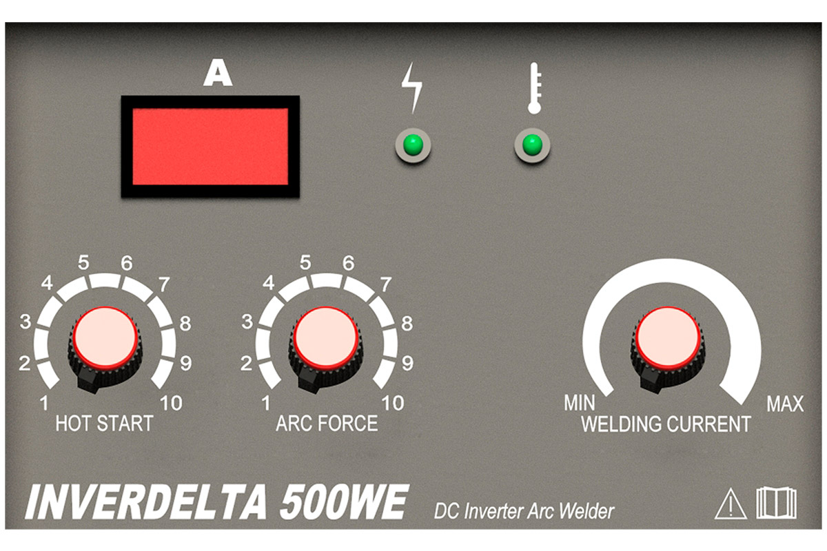 Промышленный аппарат для ручной дуговой сварки и наплавки штучным покрытым электродом (MMA). Расширенный набор настроек. Максимальный сварочный ток 500 А. Входное напряжение 380В..