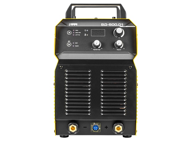Высокая мощность и сварочный ток до 500A обеспечивают возможность продолжительной сварки толстостенных конструкций и изделий, а также воздушно-дуговой строжки угольным электродом
