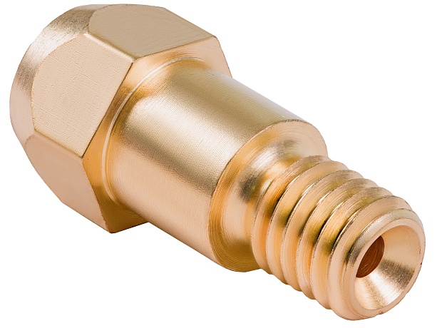Вставка под наконечник M6/28 мм (Mig-36) - предназначена для монтажа контактного наконечника в горелку. Вставка отвечает за равномерное распределение защитного газа внутри сопла и токоподвод к наконечнику. Все вставки, как правило, выполнены из латуни, имеют симметрично расположенные отверстия по всей окружности. Вставки под наконечник отличаются в зависимости от модели горелки, имеют разные размеры и внешний вид..