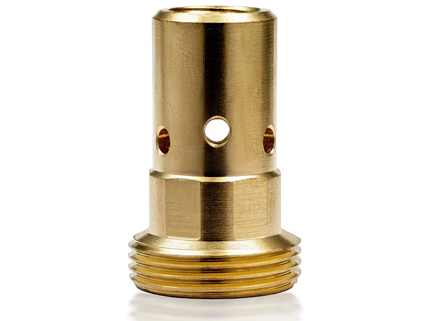 Вставка под наконечник M8/25 мм (Mig-500) - предназначена для монтажа контактного наконечника в горелку. Вставка отвечает за равномерное распределение защитного газа внутри сопла и токоподвод к наконечнику. Все вставки, как правило, выполнены из латуни, имеют симметрично расположенные отверстия по всей окружности. Вставки под наконечник отличаются в зависимости от модели горелки, имеют разные размеры и внешний вид..