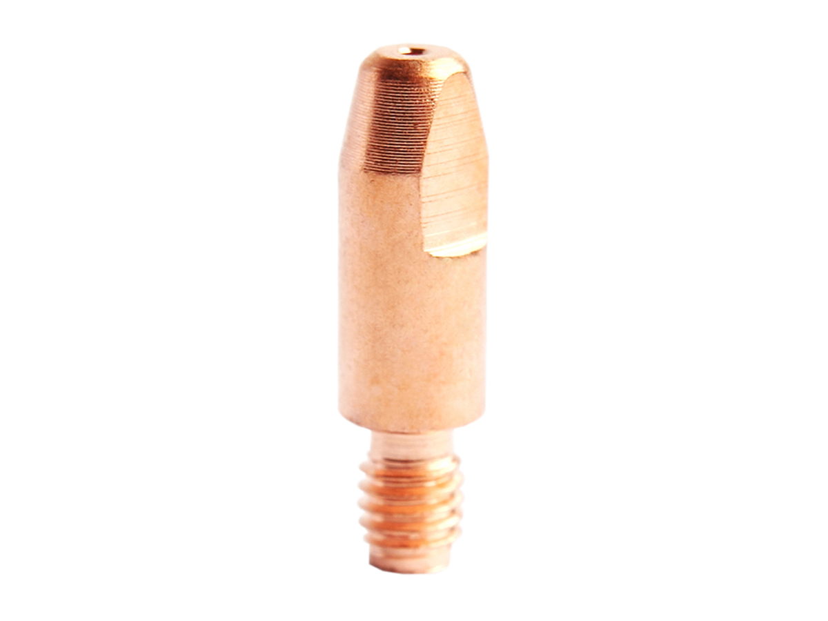 Наконечник сварочный токосъемный Cu-E 6X28X0,8 (d=0,8mm) предназначен для передачи тока на сварочную проволоку диаметром 0,8мм при выполнении электросварочных работ с помощью сварочного аппарата автоматической или полуавтоматической сварки. Медный токопроводящий наконечник Cu-E используется преимущественно для сварки стальной омедненной или порошковой проволокой. Накручивается на держатель наконечника (газораспределитель) при помощи резьбового соединения - М6. Данный наконечник подходит и взаимозаменяем к большинству горелок европейских производителей, а также и к горелкам китайского производства..