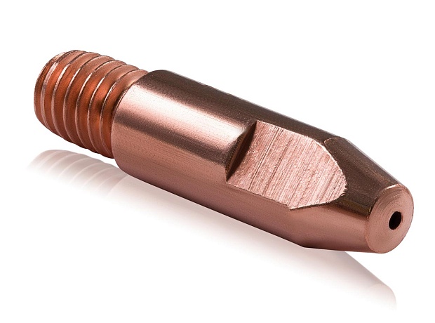 E-Cu - наконечник изготовлен из медного сплава и предназначен для сварки стальными, нержавеющими и порошковыми проволоками.