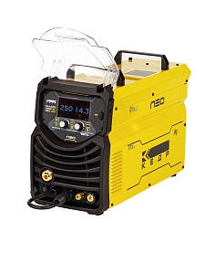 олуавтомат КЕДР MultiMIG-2500DP NEO LCD использует новейшую технологию широтно-импульсной модуляции (ШИМ) и высокоэффективные силовые модули биполярных транзисторов с изолированным затвором (IGBT). Полуавтомат КЕДР MultiMIG-2500DP NEO LCD характеризуются высокой мобильностью, малыми размерами, небольшим весом, низким потреблением энергии, удобством использования и широким функционалом благодаря высокотехнологичному LCD дисплею. Полуавтомат КЕДР MultiMIG-2500DP NEO LCD оснащен активной системой коррекции выходной мощности в зависимости от изменений входящего тока и напряжения питающей сети PFC (Power Factor Correction). Данная система служит для снижения потребляемой реактивной мощности и позволяет стабильно работать сварочному аппарату при больших перепадах сетевого напряжения, при питании от генератора и при работе от удлинителей. Полуавтомат КЕДР MultiMIG-2500DP NEO LCD является высокотехнологичным многофункциональным промышленным источником питания для MIG/MAG, MMA и TIG сварки. Механизированный процесс MIG/MIG сварки обеспечен широким списком синергетических программ, разработанных для различного типа проволоки, защитного газа и свариваемого металла, а также импульсные режимы сварки с использованием одинарного импульса или технологии двойного импульса. Применение высокоскоростного цифрового управления сварочным процессом позволяет обеспечить высококачественные сварные швы с отличным геометрическим формированием и внешним видом, Полуавтомат КЕДР MultiMIG-2500DP NEO LCD минимизировать разбрызгивание электродного металла и тепловложение в свариваемую конструкцию. Простое и интуитивно понятное управление сварочными параметрами с LCD панели управления позволяет легко настраивать и контролировать режимы сварки. Наличие синергетического программного управления минимизирует время оптимального подбора параметров сварки в зависимости от задачи. Режим TIG сварки с поджигом дуги касанием и подъемом вольфрамового электрода (LiftTIG) имеет превосходный старт сварочной дуги, стабильность и мягкость горения дуги для выполнения высококачественных сварных швов. Режим ММА сварки обеспечивает высокий контроль процесса сварки при использовании штучных электродов с различным типом покрытия, а дополнительные функции Горячего старта и Форсажа дуги повышают удобство работы и качество сварных соединений. Полуавтомат КЕДР MultiMIG-2500DP NEO LCD имеет встроенные функции автоматической защиты от перенапряжения, перегрузки по току и перегрева. Если возникает какая-либо из вышеперечисленных проблем, то система самодиагностики источника выдаст соответствующую ошибку на LCD панели и выходной ток отключится автоматически. Перечисленные меры обеспечивают высокую степень защиты аппарата, продлевают срок его службы, а также повышают удобство диагностики и обслуживания оборудования..