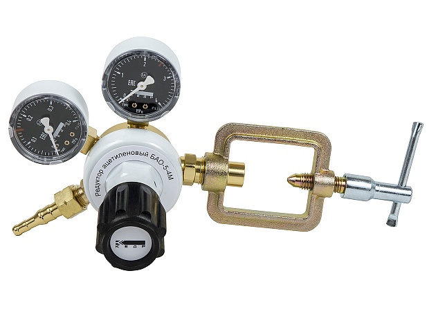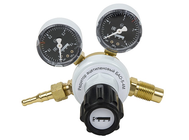 Редуктор ацетиленовый КЕДР БАО-5-4М предназначен для понижения давления газа, поступающего из баллона, и автоматического поддержания заданного рабочего давления постоянным при газопламенной обработке..