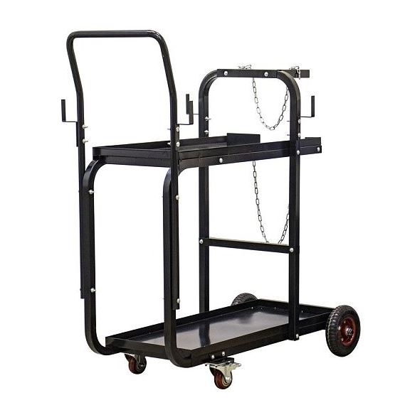 Тележка для сварочного оборудования AuroraPRO задумана инженерами компании для облегчения перемещения аппаратов в комплекте с баллонами по цехам, гаражам и другим производственным помещениям. Высокое расположение аппарата на тележке позволяет настраивать инвертор не наклоняясь к нему. Передние поворотные колёса увеличивают манёвренность конструкции. На полках тележки можно разместить все необходимые сварочные аксессуары..
