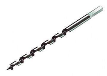 Изготовлено из углеродистой стали с твердостью режущей части 40 HRС. Сверло имеет центрирующее остриё со спиральной нарезкой, уменьшающей осевую нагрузку, и острую подрезную кромку, которая позволяет с высокой точностью просверлить отверстие с гладкими поверхностями, предотвращая смещение сверла и исключая необходимость в предварительном засверливании. Шестигранный хвостовик обеспечивает надежное удержание сверла в патроне..