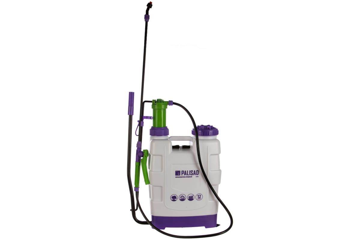 Ранцевый опрыскиватель Palisad 64784 с объемом бака 12 л, с насосом, шлангом и разбрызгивателем, используется для распыления удобрений и пестицидов на садово-огородные культуры. Резервуар вмещает 12 л жидкости, поэтому на одной заправке можно обработать участок большой площади. Широкое горло облегчает залив раствора. Опрыскиватель вешается на спину при помощи мягких лямок, и с ним удобно перемещаться по участку. Устройством могут с удобством пользоваться как правши, так и левши..