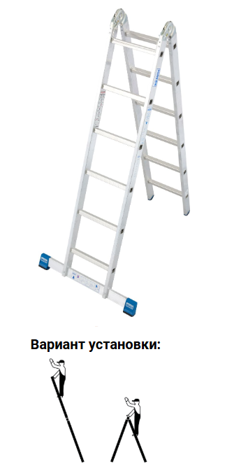 Запатентованный усиленная двухсторонняя шарнирная лестница. Можно использовать как стремянку или приставную лестницу.