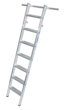 Алюминиевая стеллажная лестница с крюками для навешивания на трубы диаметром Ø 30 мм.