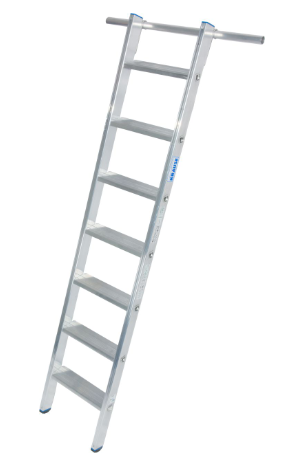 Алюминиевая стеллажная лестница с крюками для навешивания на трубы диаметром Ø 30 мм.