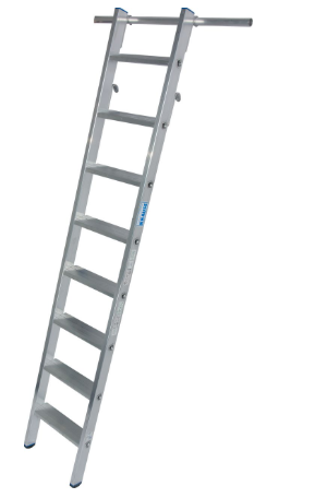 Алюминиевая стеллажная лестница с крюками для навешивания на трубы диаметром Ø 30 мм.