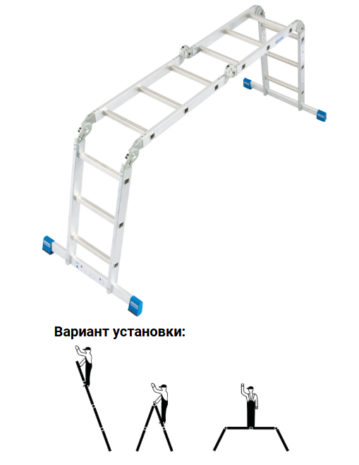 Данную многофункциональную шарнирную лестницу Вы можете использовать как приставную лестницу, стремянку или подмости.