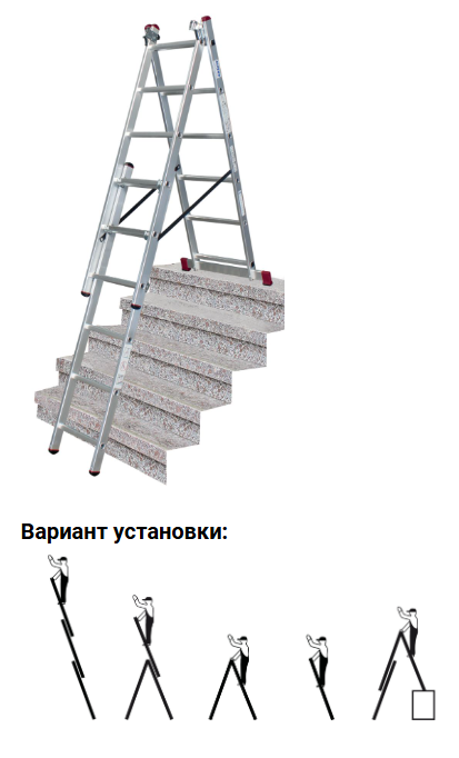 Благодаря дополнительным крюкам модель может устанавливаться на лестничных маршах. Пружина на защёлке-фиксаторе устанавливается только на узкой секции лестницы, что обусловлено возможностью использовать узкую секцию в перевёрнутом на 180° положении..